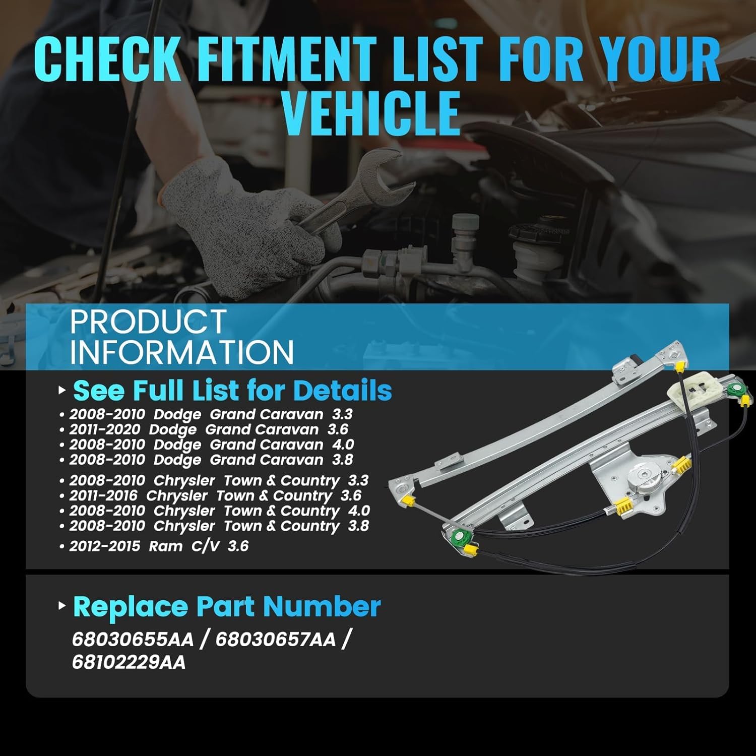 | Warranty Description | One-year warranty covers replacement cost only, excludes installation, labor, towing, or other fees. If window regulator/motor fails within 12 months, contact us via Amazon message. |