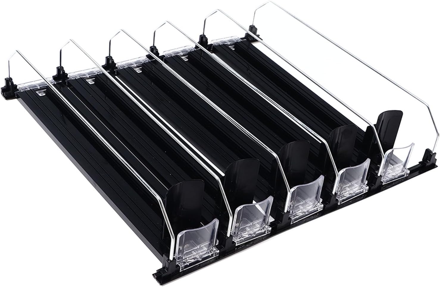 1. Adjustable Design: This drink organizer is suitable for most standard sized cans and bottles (12oz, 16oz, 16.9oz, 20oz). The width is adjustable, allowing you to accommodate larger items by simply adjusting the width without installing the metal partition too tightly. 2. Sturdy and : Made from recycled plastic with spring loading, this refrigerator drink rack guarantees high performance and durability. Its thin ensures heavy duty usage and to wear. Equipped with adhesive strips to prevent sliding. 3. Automatic Restocking: This beverage organizer automatically restocks without tilting, offering excellent tension and smoothly rolling. Cans can easily move to the front without bouncing around. It is the choice for supermarkets. 4. Solution for Organization: This drink organizer is the ideal solution for cluttered countertops, garage coolers, pantry shelves, or refrigerators. It is easy to use and saves you valuable time. 5. Easy Installation and : The drink organizer consists of front and back fixing rods, sliding rails, and dividers. With the included installation instructions, it is easy to install without any tools, taking just a few minutes to set up. Spec: Item Type: Drink Organizer Material: ABS Weight: Approx. 1547g/54.6oz Product Size: Approx. 42x38x8cm/16.54x14.96x3.15in PackageList: 5 x Drink Organizer 2 x Adhesive Strip 6 x Iron Frame 1 x Specification