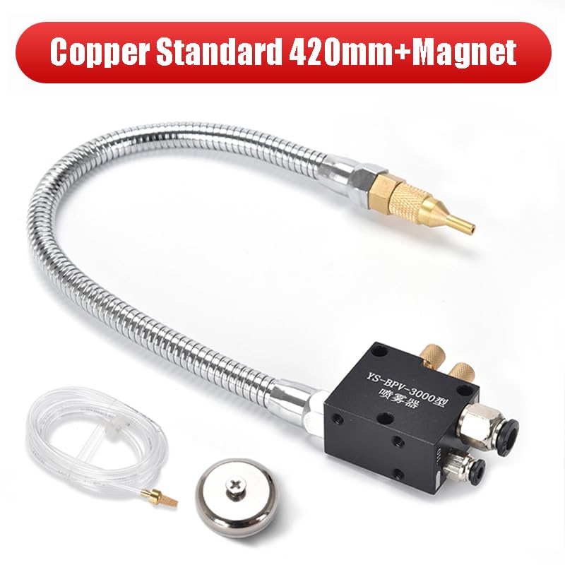 Coolant Lubrication Spray System 8mm Air Pipe For CNC Lathe Mill Drill DescriptionEngraving machine spray cooling,Special design,direction of rotation,easy to operate.Standard fixing device,fine spray port, long life.Specifications:Material:Plasticamp.Metalamp.BrassHose:4*2.5mm about 1.5M.Cooling stone/metal/ceramic tile engraving machine.For CNC Lathe Milling Drill Machine.Package includes:1x Mist Coolant System(Hose:4x2.5-1.5m)#Industrial Automation,Manufacturing Metalworking,Manual Transmission Parts,Geek,Business Industrial,Tech Gadgets,3D Printer,General Industrial Parts,Plastics Equipment Supplies,Process EquipmentFeatures:1) a lot of water problem solving tools, easier to clean up.2) processing the coolant can save more than 80%, the cooling effect is no less than the conventional water-cooled.3) gas processing chips are blown away, working safer.4) the nebulizer gas and coolant is adjustable, easy to use on different processing conditions.5) Even the super-hard alloy precision machining the workpiece can achieve a smooth surface6) not only increases the machining cutting speed, save time and reduce processing costs and tool wear.NOTES:1. Clean the liquid shall be used.2. Do not use liquid-corrosive.3. In the liquid without pressure output required to make sure that the air pressure in the range 5-7KGF / CM2(atomization and gas, associated gas pressure).4. Use the liquid viscosity at 68cSt or less.