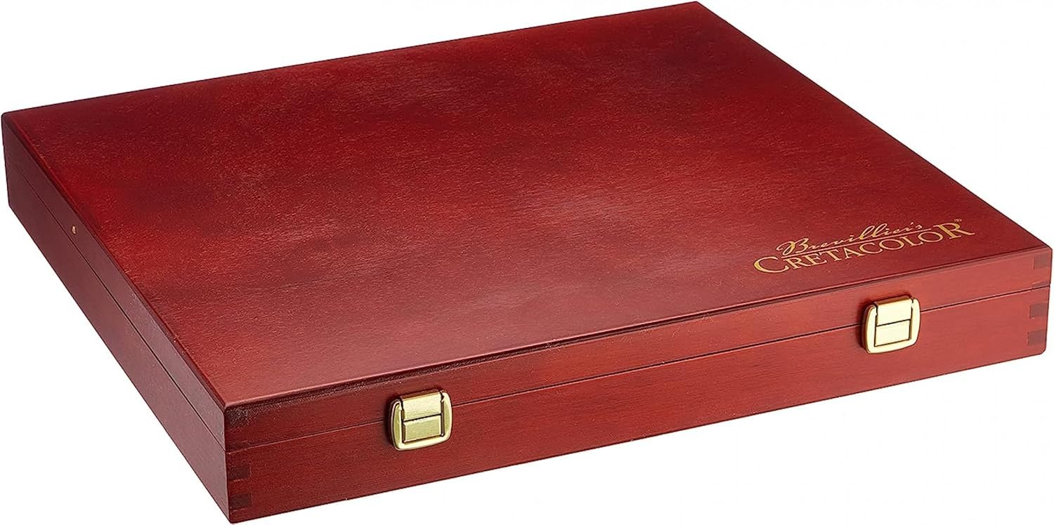 The Selection Pro Drawing Set comes in an exclusive two-tier wooden case and includes a complete assortment for the demanding artist. It includes pencils and leads, sanguine, sepia, white and black chalk, charcoal, Nero, Graphite Aquarell and Monolith Graphite, brown and gray chalks, charcoal and graphite sticks, a blending stick, a lead holder, kneadable eraser, artist's sharpener, chalk holder and lead sharpening board.