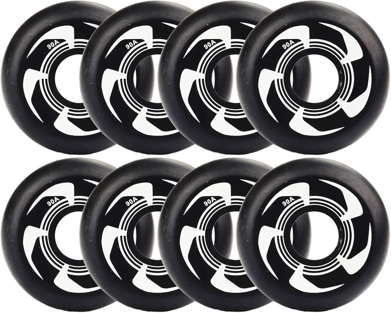 The inline roller skate wheels are made of PU rubber, wheels of this material will provide you with excellent balance. This polyurethane performs excellently on wood, concrete and sports tile interior surfaces.90A hardness inline wheels, suitable for indoor and outdoor skating, very good braking effect, improve safety.There are two types with and without bearings. Please choose according to your needs.Size: 72mm, 76mm, 80mmHardness: 90AColor: black and white, white green, black greenConfiguration: 2 types with bearing/without bearingMaterial: rubber PU high elastic, wear-resistant, double wheel meatNote:The color of the item may vary slightly due to photography & your own computer or cell phone. There's some little error from human measuring.