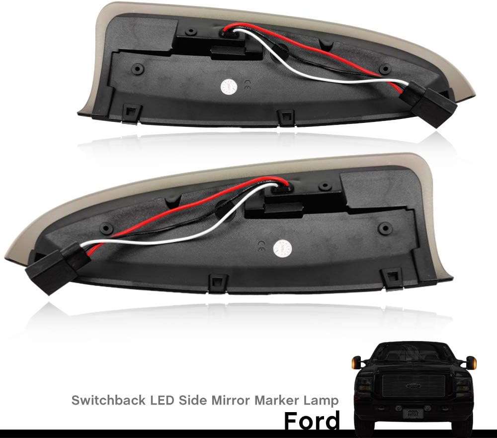 Connect the LED side marker lights to the switchback side mirror turn signal light harnesses to create a turn signals feature! This will enhance your Caddy's luxurious presence by adding additional safety and visibility features.The clear amber LED side marker lights are made to fit the 2003-2004 Ford F250, 2006-2007 Ford F250, 2003-2007 Ford F-350 F-450 F-550 Super Duty. Give your vehicle upgraded LED side marker lights for a modern and dynamic appearance as well as enhanced safety, visibility, and fashion style at night! Description of these led side marker lamps: Features: Lens Color: Clear Lens Light color: Amber LED Turn Signal Lights White LED Parking Lights The lens is made of anti-scratch PC plastic, which prevents the lens from being faded with long-time exposure Each side marker light made of super bright SMD led chips. Easy install, No modification needed. Water resistance is improved with ultrasonic treatment on lens surface. Compatible with Ford F-Series Super Duty Pickup that heated towing mirror that comes with turn signal function : 2003-2004 Ford F-250 2006-2007 Ford F-250 2003-2007 Ford F-350 2003-2007 Ford F-450 2003-2007 Ford F-550 For the Installation, please follow the steps as below. 1) Remove the OEM factory lights; then you will see there are 3 screw holes on each light base 2) Connect the plug of this LED lights; 3) Please install the screws to make the lights stable on the light base 4) Install the screws to make the lights stable if the lights can not stable on the light base. Note: The OEM lights is a bit hard to be remove, please take care not to be hurt when remove the original lamps Package Including: 2X Switchback Mirror Side Marker lamps 6X Screws