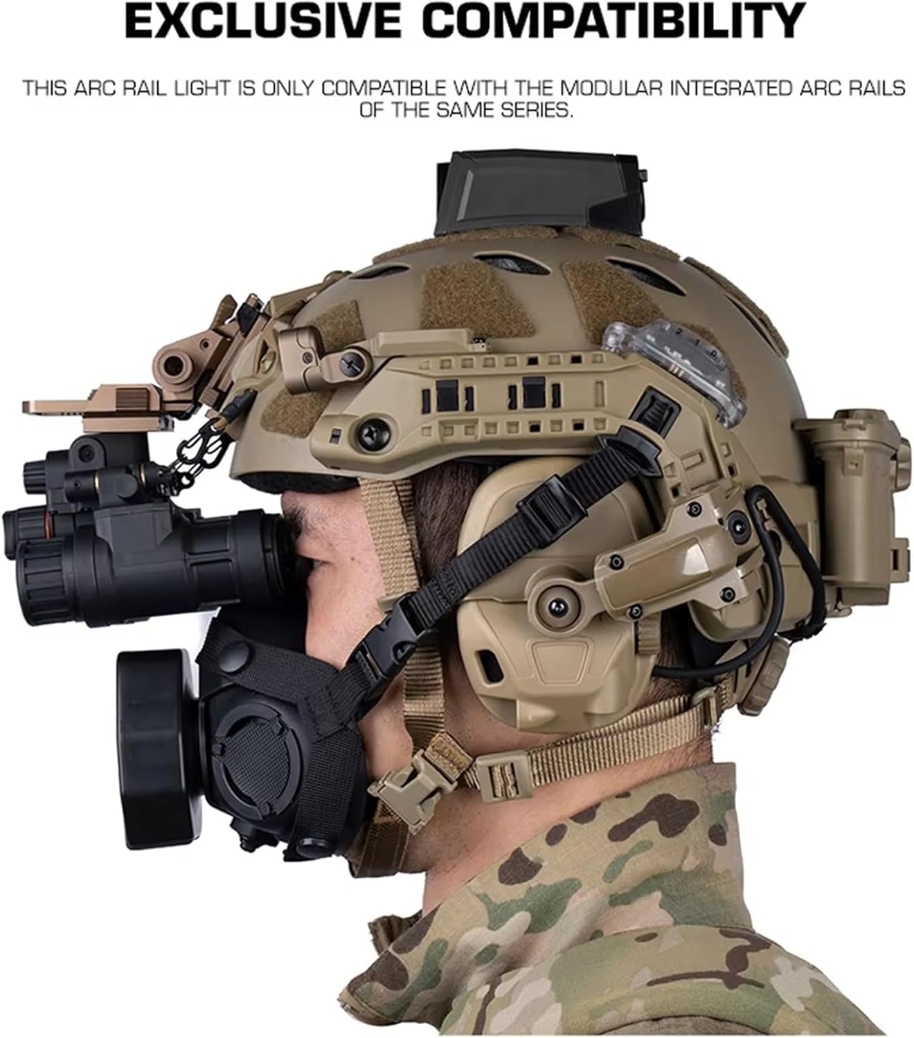 Product Name:Modular ARC Rail LightProduct size:11*8*5CMProduct net weight:0.024KGProduct gross weight:0.09KGProduct colour:Black/Tan/Tan 499(TN)Main material:Nylon SiliconeApplicable scene:Outdoor sports, Tactical CS airsoft games etc.
