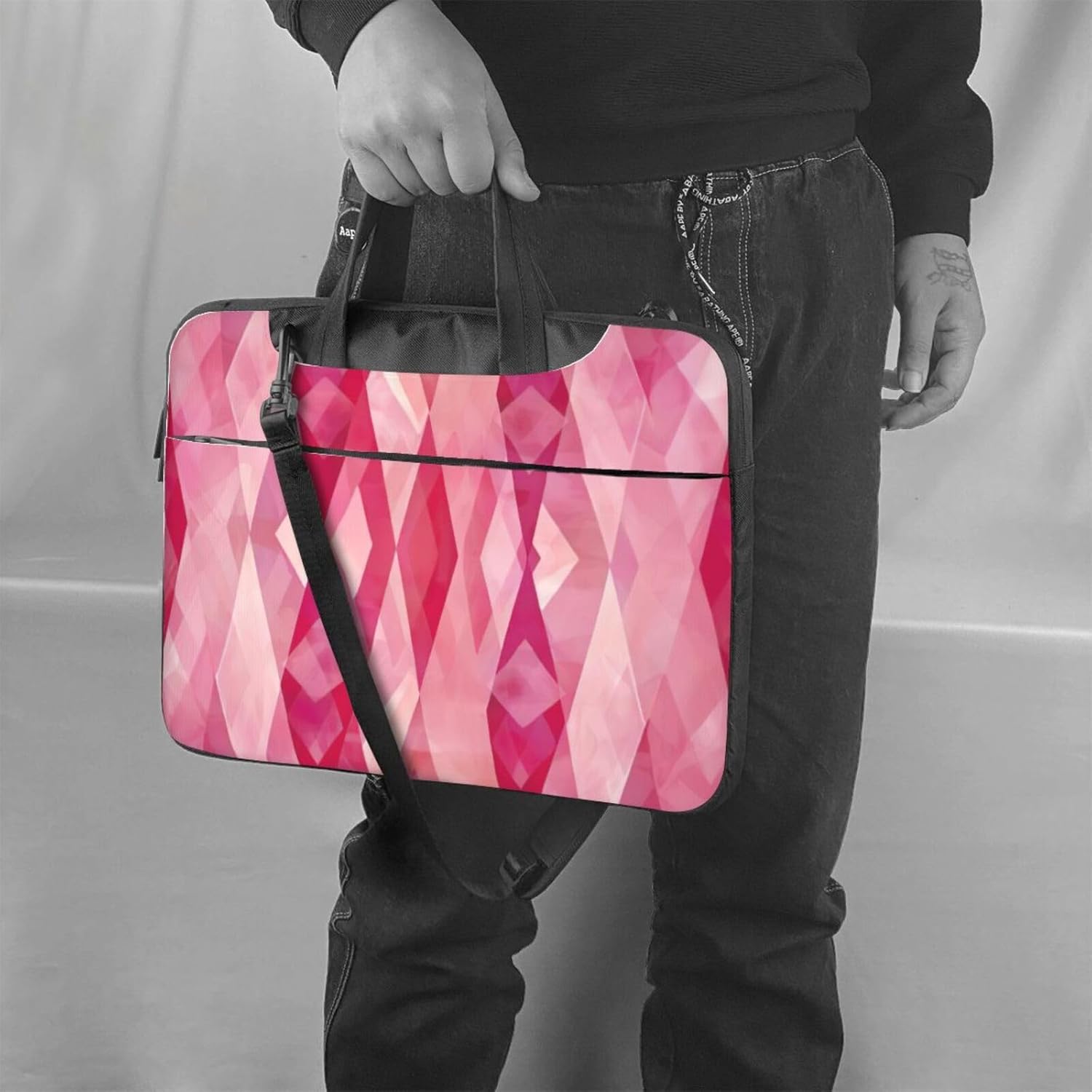 Our Diamond Pattern Print computer messenger bag is the exquisite accessory for your daily work or travel needs.Designed with a sleek and modern look, our laptop shoulder bag is made from Oxford cloth materials to ensure durability and longevity. The main compartment of the slim computer bag for laptop is secured with a smooth zipper closure, and inside you'll find a separate laptop compartment that can comfortably accommodate laptops, computers, or tablets. On both sides of the laptop bag, there are deep pockets that provide additional storage space. It's not just a computer bag, you can use it as a shoulder bag, crossbody bag, and briefcase at will. The design of the rear belt frame is reasonable and easy to use during business trips. It is a great gift for your family and friends when birthday, Christmas, Mother's day, Father's day and Thanksgiving.