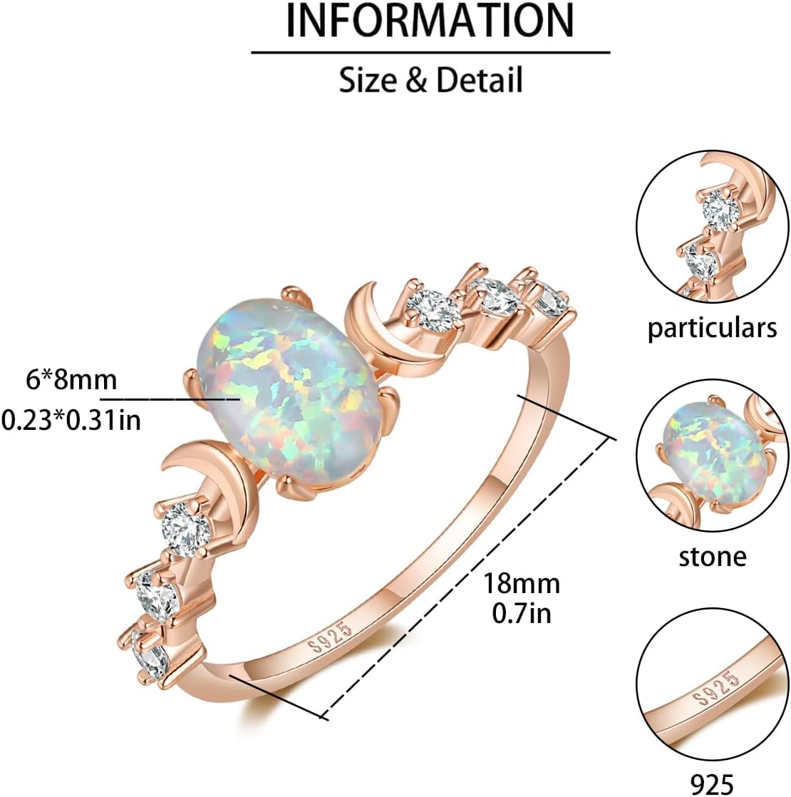 Life stage (store name) is a fine jewelry store. Every product is made of sterling silver or better materials.Information about the moonstone ring Brand: Angol Metal type: 925 sterling silver Gem type: genuine moonstone Color available: silver Style: minimalist moonstone ring Suitable people: women/ girlsKey features Minimalist ring design, suits for any occasions. 925 sterling silver, hypoallergenic and safe to sensitive skin. Very comfortable and won't turn your finger green. Came with an elegant gift box with Brand “Angol” mark.Occasions Back to school gift Graduation gift Valentines Day gift Mothers Day gift Anniversary gift Thanksgiving Day gift Wedding gift Birthday gift Christmas gift New Year's Eve giftMaintenance ways Avoid with moonstone rings for women with chemicals,cosmetics, wine. Wipe the moon ring for women with soft cloth. Put the sterling silver moonstone ring in gift box when not wearing Prevent the moon phase ring deformation, don't wear when sleeping.Satisfaction promise--24 hours customer service online.--60 days extra long refund.-Replacement/change service.Expect our cooperation from the moonstone ring sterling silver.