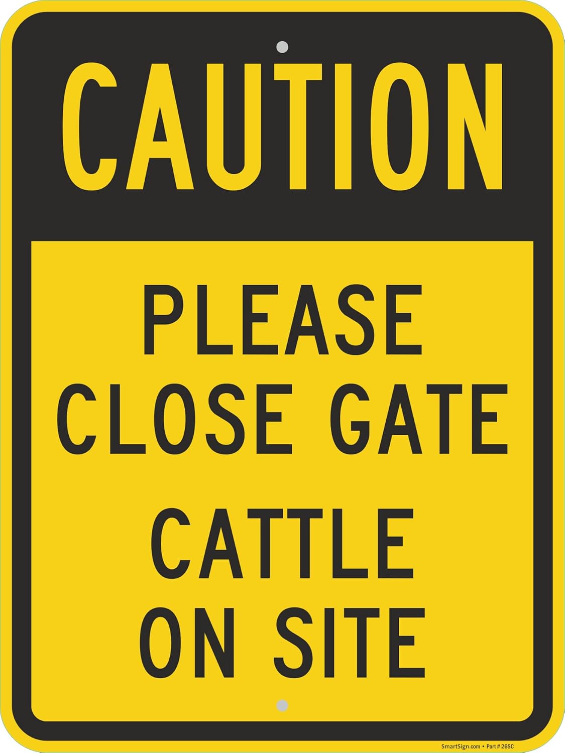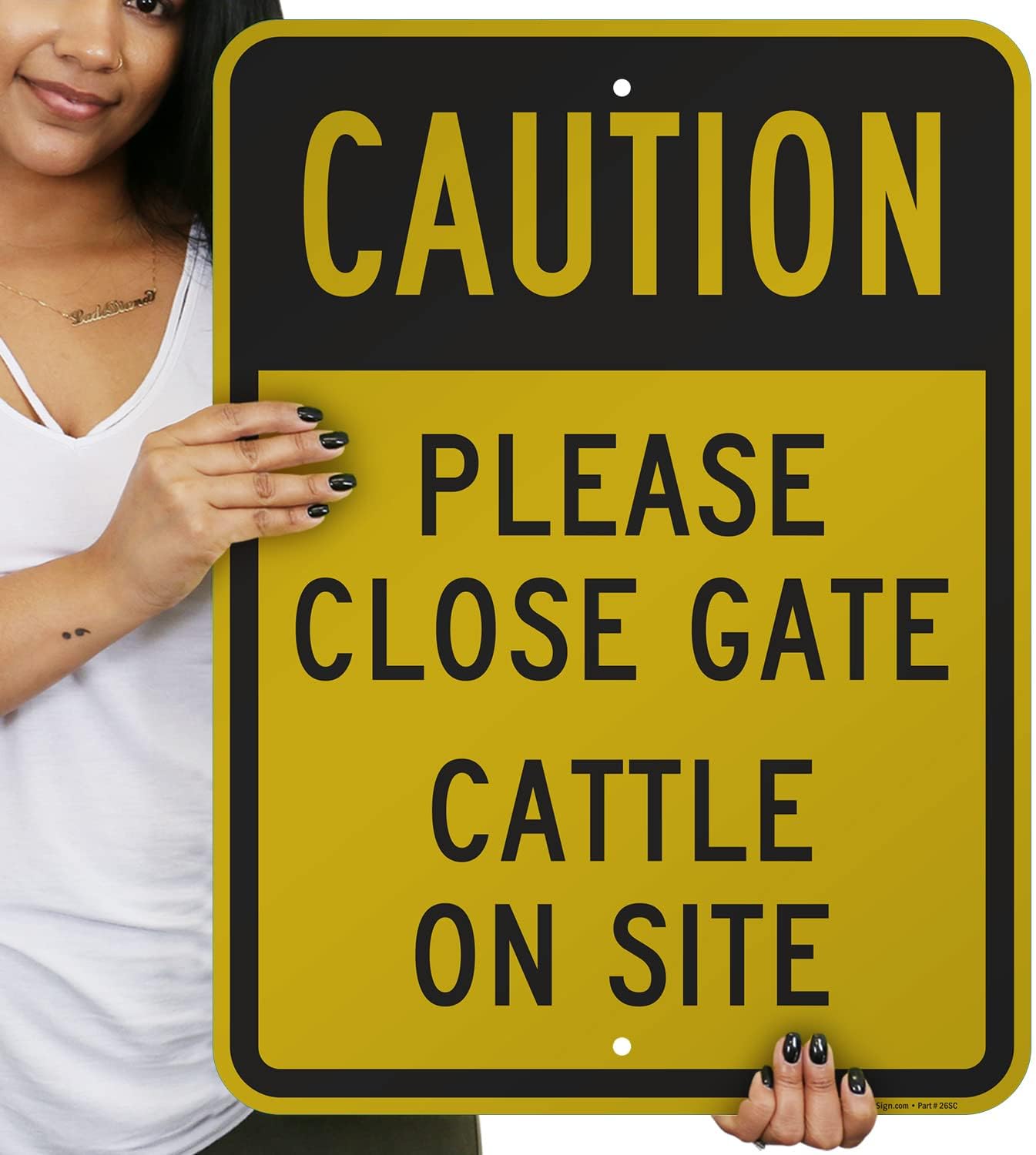 SmartSign 24 x 18 inch “Caution - Please Close Gate, Cattle On Site” Metal Sign, 80 mil Laminated Rustproof Aluminum, Black and Yellow