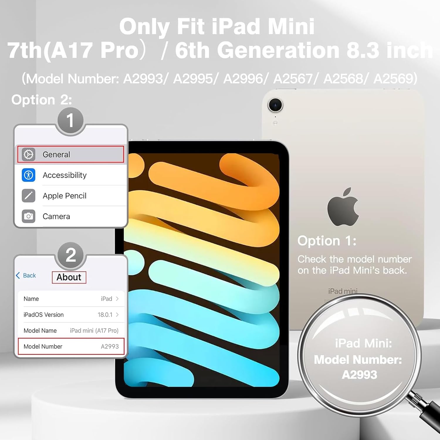 | Compatible Devices | Fit for iPad Mini 7th/ 6th Generation 8.3 inch (Model Number: A2993/ A2995/ A2996/ A2567/ A2568/ A2569) |